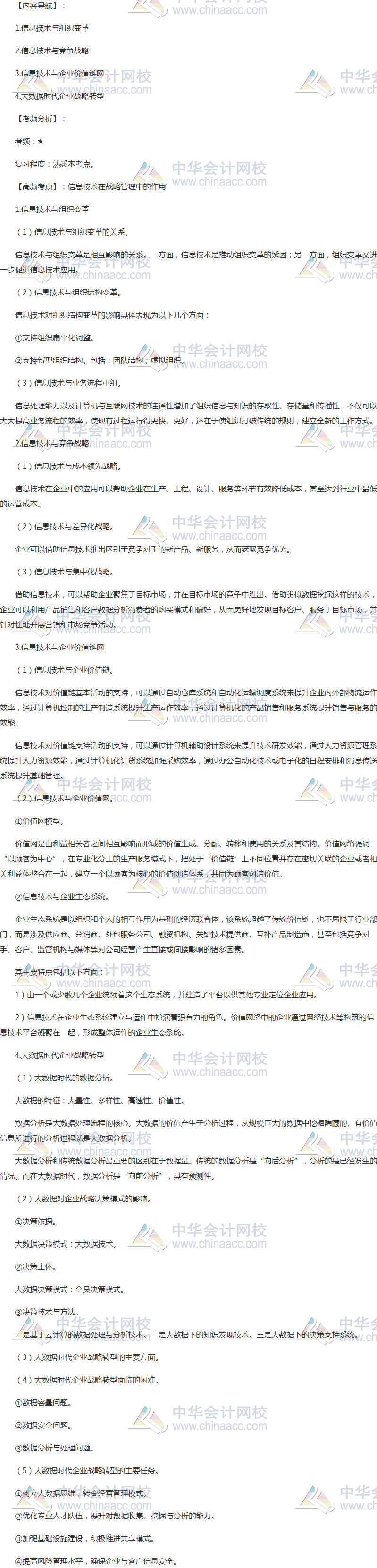备考时间紧张,抓紧时间抓住重点备考注册会计师吧!正保会计网校教学老师为广大考生整理了高频考点,我们一起来学习2018《公司战略与风险管理》高频考点:信息技术在战略管理中的作用。本考点属于《公司战略与风险管理》第四章战略实施第五节信息技术在战略管理中的作用的内容。