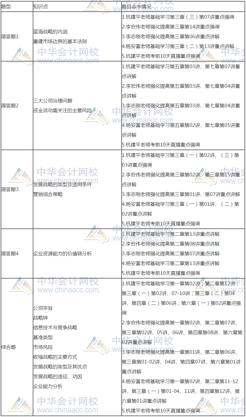 (2)第三章战略选择是重点中的重点。主观题部分,战略选择相关题目分值比例几乎占到了一半,重点考核了发展战略的类型、适用条件、途径、动因以及蓝海战略。