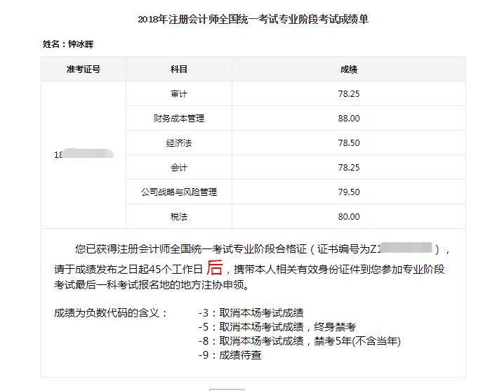 2018注册会计师高分学员又一学霸现世!总分482.5分,单科最低分78.25分!