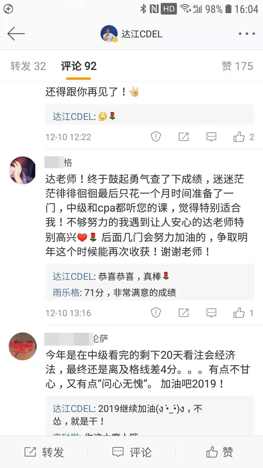网校的各位老师也都纷纷表示,注会考试能够这么顺利的通过,最重要的还是注会小伙伴们坚持不懈的努力,注会这条路虽然艰辛,可是注会的小伙伴们依然勇攀高峰,相信未来大家一定会走出属于自己的无悔人生。