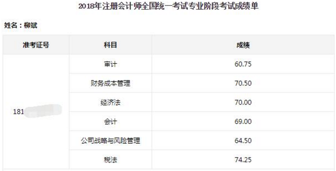 2018年注册会计师考试成绩公布,正保会计网校收到了学员们来自四面八方的喜讯,同时也与网校的同门们分享者彼此的备考心得,希望可以对大家有所帮助,现在就让我们来看一下这位一年考6科的注会考生是怎样通过注会的。下面这张成绩单说明了注会一年过6科也不是不可能!