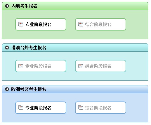 选择对应的考区,以及考试阶段,大部分考生是选择内地考生专业阶段报名。