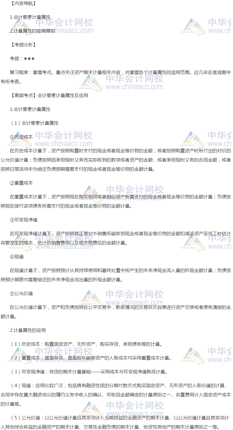 2019年注册会计师备战全面展开,为了能让注会的各位小伙伴在今年的注会备考中步步为营,正保会计网校的各位老师为大家整理了《会计》各章高频考点。现在,我们一起来学习2019《会计》高频考点:会计要素计量属性及应用。本考点属于《会计》第一章总论第四节会计要素及其确认与计量的内容。