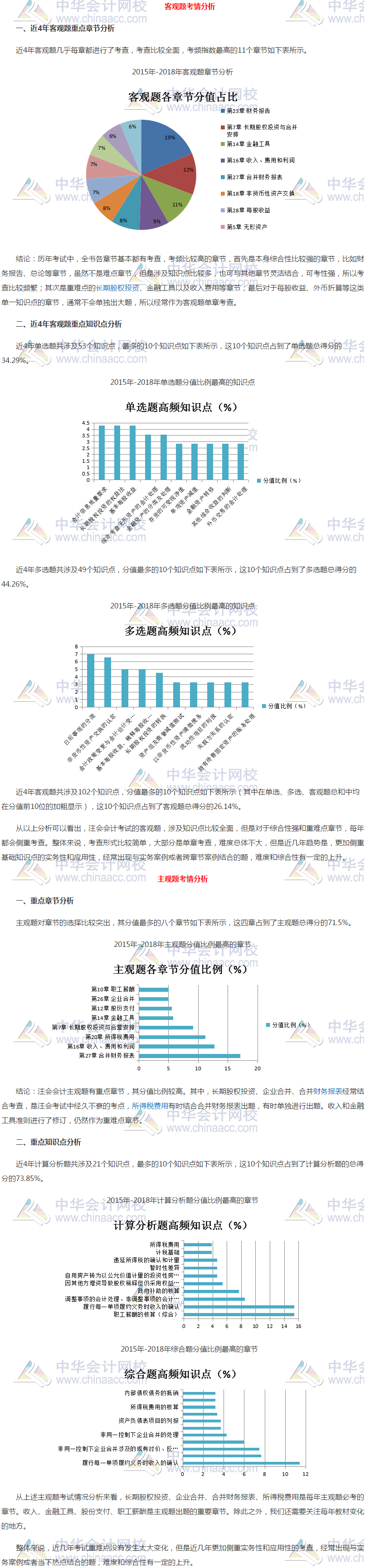 2019年注册会计师备考已经全面开启,如何将今年的注册会计师考试一举拿下,不仅需要刻苦的学习,有时候还需要一些策略,抓住考试的重难点及各章考试的题型及分值占比,这对于注会备考的广大考生来说也是非常重要的组成部分,知己知彼才能百战百胜,现在就让我们来看一下注会《会计》主观题和客观题的各章分值占比是怎样的吧!