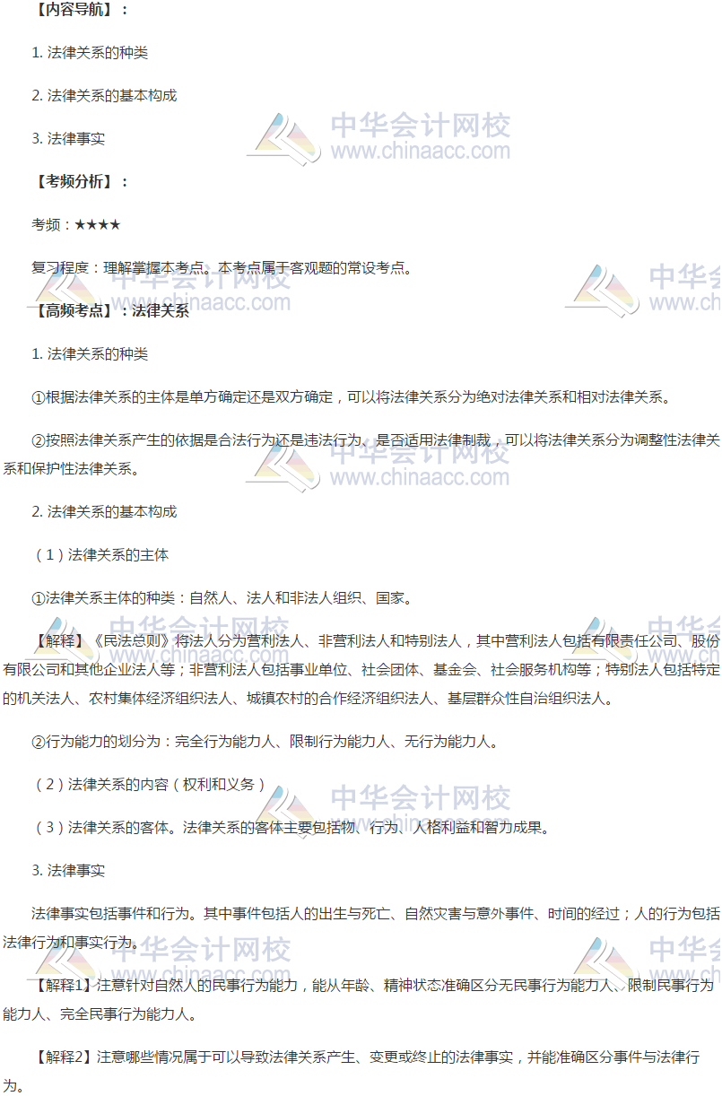 2019年注册会计师备战全面展开,为了能让注会的各位小伙伴在今年的注会备考中步步为营,正保会计网校的各位老师为大家整理了《经济法》各章高频考点。我们一起来学习2019《经济法》高频考点:法律关系。本考点属于《经济法》第一章法律基本原理第二节法律关系的内容。