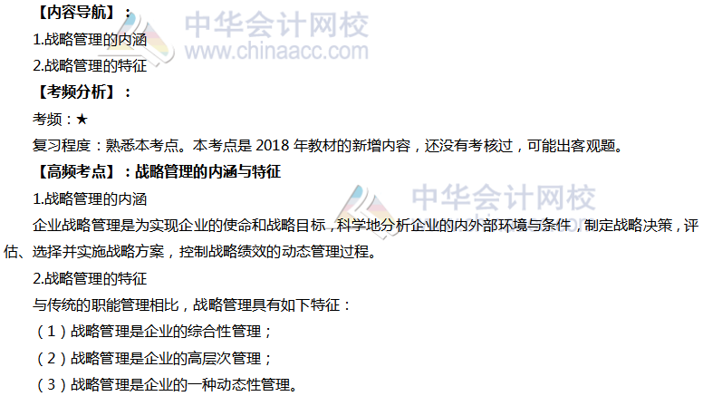 备考时间紧张,抓紧时间抓住重点备考注册会计师吧!正保会计网校教学老师为广大考生整理了高频考点,我们一起来学习2019年《公司战略与风险管理》高频考点:战略管理的内涵与特征。本考点属于《公司战略与风险管理》第一章战略与战略管理第二节公司战略管理的内容。