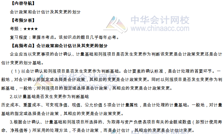 2019年注册会计师备战全面展开,为了能让注会的各位小伙伴在今年的注会备考中步步为营,正保会计网校的各位老师为大家整理了《会计》各章高频考点。现在,我们一起来学习2019《会计》高频考点:会计政策和会计估计及其变更的划分。本考点属于《会计》第二章会计政策、会计估计及其变更和差错更正第三节会计政策与会计估计及其变更的划分的内容。