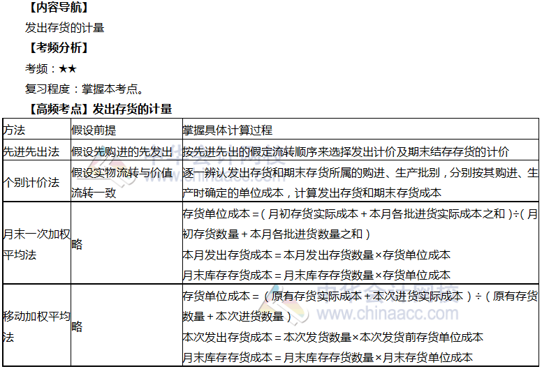 2019年注册会计师备战全面展开,为了能让注会的各位小伙伴在今年的注会备考中步步为营,正保会计网校的各位老师为大家整理了《会计》各章高频考点。现在,我们一起来学习2019《会计》高频考点:发出存货的计量。本考点属于《会计》第三章存货第二节发出存货的计量的内容。
