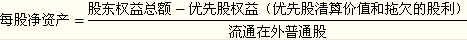 既有优先股又有普通股的公司,通常只为普通股计算净资产,在这种情况下,普通股每股净资产的计算如下: