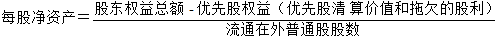 既有优先股又有普通股的公司,通常只为普通股计算净资产,在这种情况下,普通股每股净资产的计算如下: