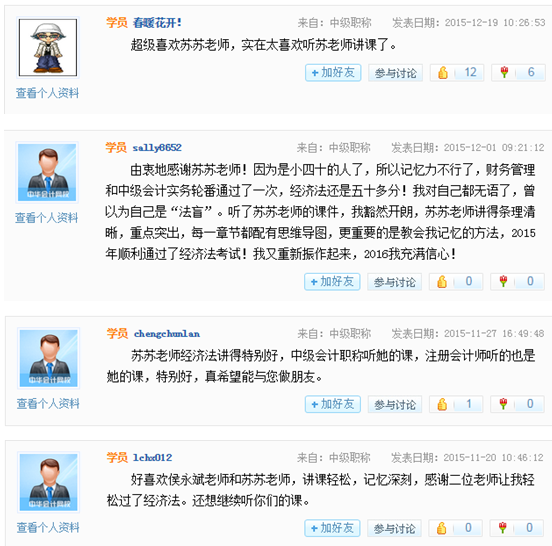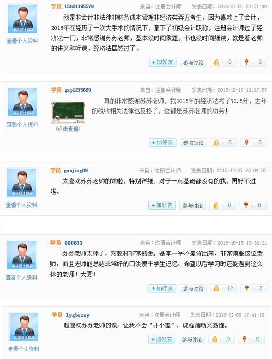 看到学员的评价是不是有一种恨不得立马报课的冲动呢?这是实力的显现,是事实的声音!复习枯燥,备考不易,想通过注会考试的你,快来跟上苏苏老师的脚步一起战胜注会吧!我想选课>>