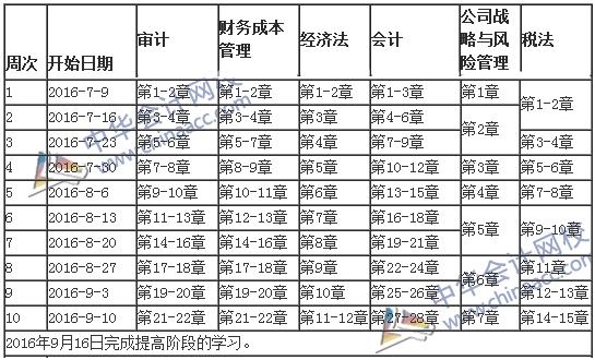 2016年注册会计师考试学习计划表(强化提高阶段)