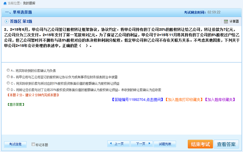 我们随便点一个进去看一下,看到没?考试界面跟我们参加考试的界面基本是相同的,不仅让你做题,还能全真模拟真实考试,建议完成时间,免费答疑,加入收藏夹反复练习…真的是好贴心啊有木有!
