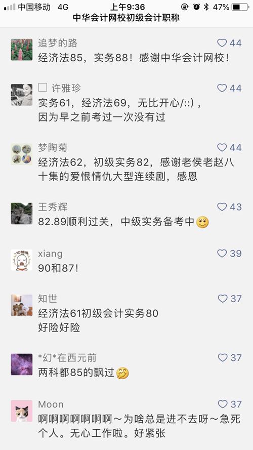盼星星盼月亮,初级会计职称的考试成绩终于可以查询了。正保会计网校的各位学员们也是纷纷报喜,不管是高分稳过还是低分飘过,都恭喜大家!终于结束了一场堪比“高考”的考试。