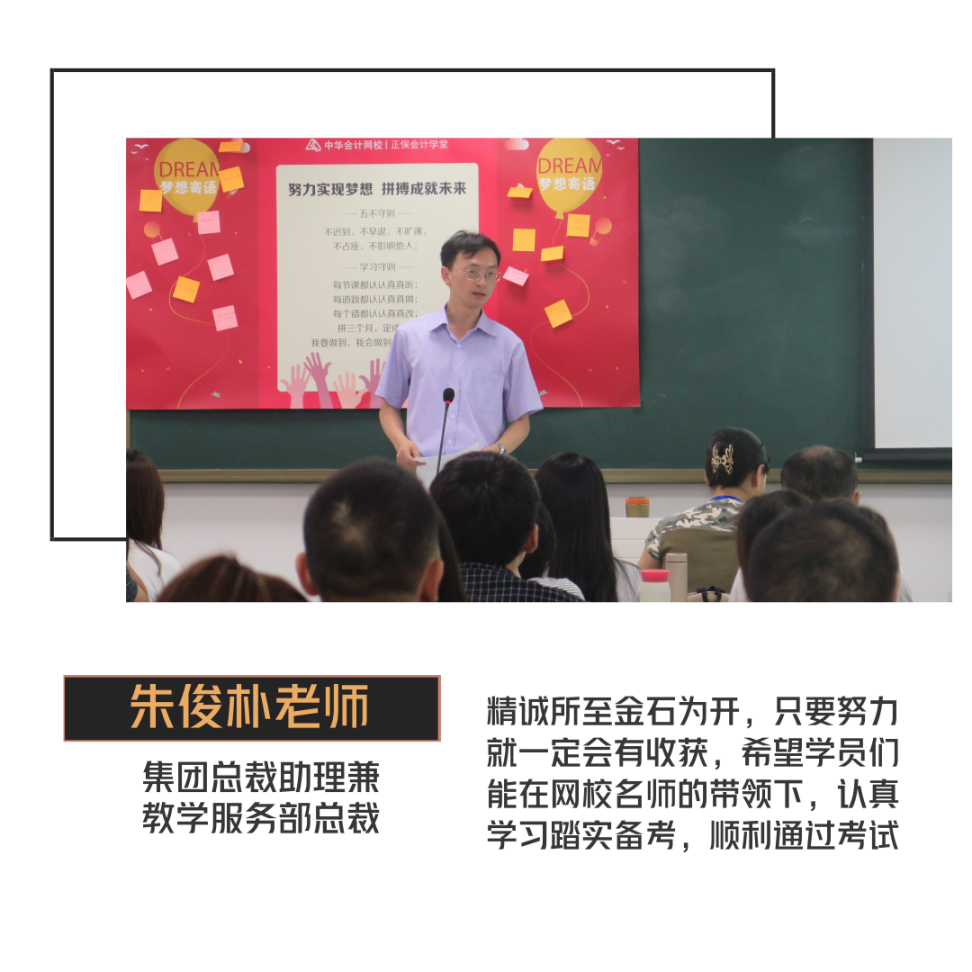 集团总裁助理兼教学服务部总裁朱俊朴老师为CPA高端面授班的学员致辞,他表示希望提供最专业的教学服务来帮助学员们顺利备考,并也希望学员们多提宝贵的建议,让面授班的教学和服务越来越好,能更好地服务于广大的CPA考生。可见网校高层领导对咱们高端面授学员的重视。
