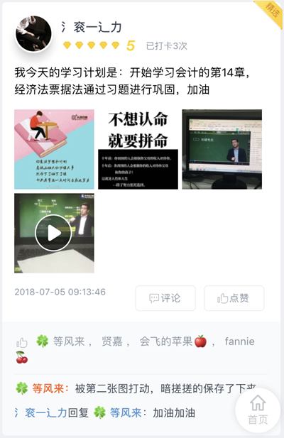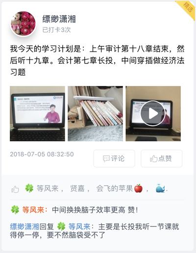 自网校“注会百天拼搏季”打卡活动预热以来,已有10000余名注会考生报名加入,注会宝宝们纷纷立下自己的“百天flag”,分享自己的每日计划、备考状态以及学习进度。更有很多宝宝说:“终于找到组织了,学习注会的动力又有了!”