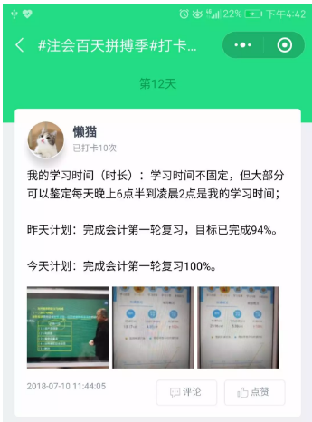 因为注会考试难度大,所以一直都知道注会宝宝们此时都十分用功,但真心没想到宝宝们竟然这么拼命——好多好多人竟然凌晨4点就起来学习了,晚上学习到凌晨1、2点的更是大有人在。小编水土不服就服你们!送你一份2018注会百天直达计划吧,为你的扯证助力一把吧!