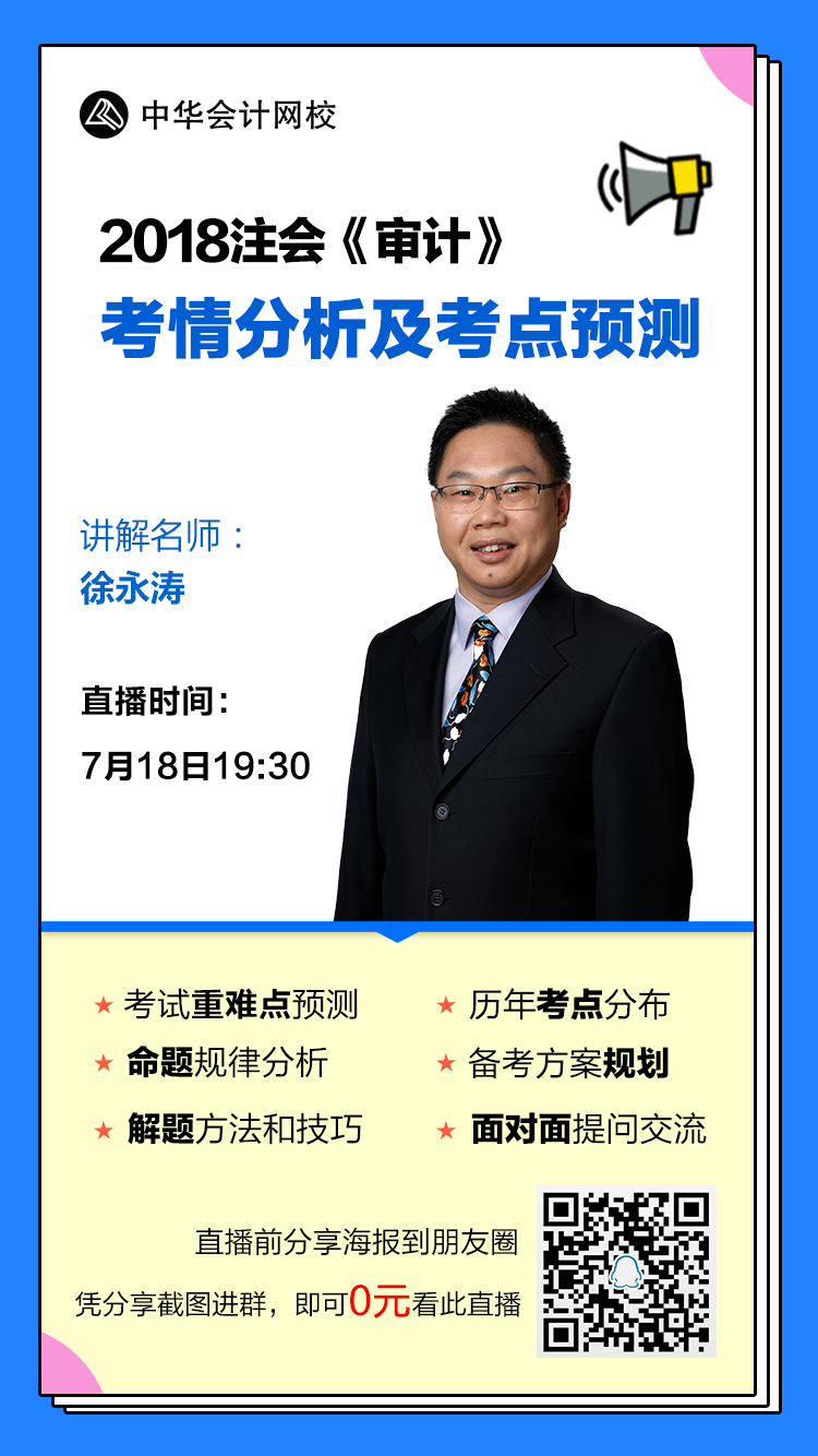 2018年注会点题密训班第一部分“考情分析”直播7月16日正式开课,直播时间安排如下: