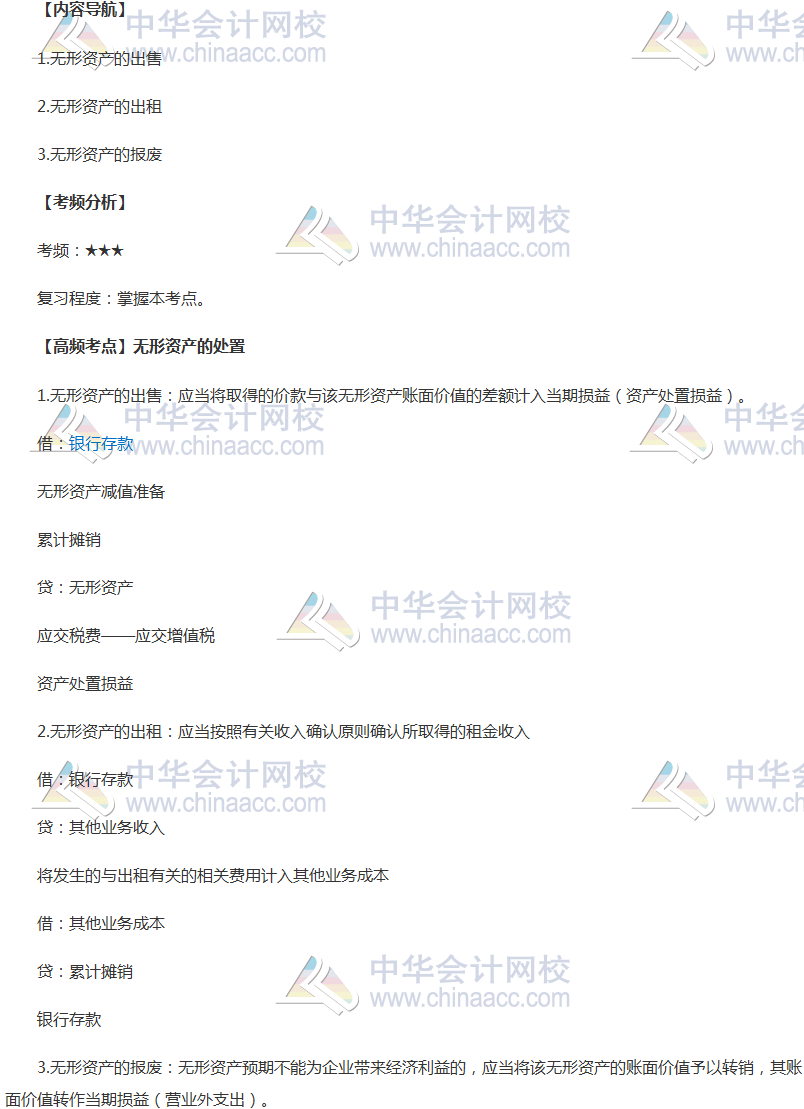 备考时间紧张,抓紧时间抓住重点备考注册会计师吧!正保会计网校教学老师为广大考生整理了高频考点,我们一起来学习2018《会计》高频考点:无形资产的处置。本考点属于《会计》第五章无形资产第四节无形资产的处置的内容。
