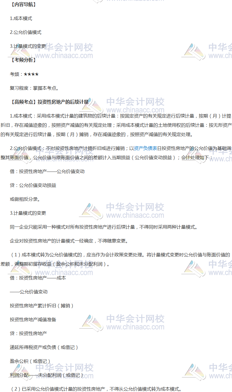 备考时间紧张,抓紧时间抓住重点备考注册会计师吧!正保会计网校教学老师为广大考生整理了高频考点,我们一起来学习2018《会计》高频考点:投资性房地产的后续计量。本考点属于《会计》第六章投资性房地产第三节投资性房地产的后续计量的内容。