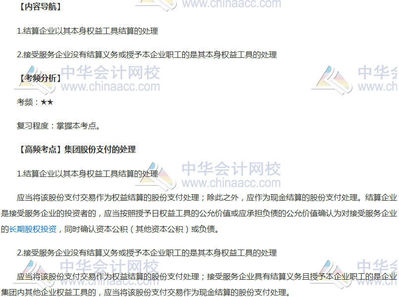 备考时间紧张,抓紧时间抓住重点备考注册会计师吧!正保会计网校教学老师为广大考生整理了高频考点,我们一起来学习2018《会计》高频考点:集团股份支付的处理。本考点属于《会计》第十二章股份支付第二节股份支付的确认和计量的内容。