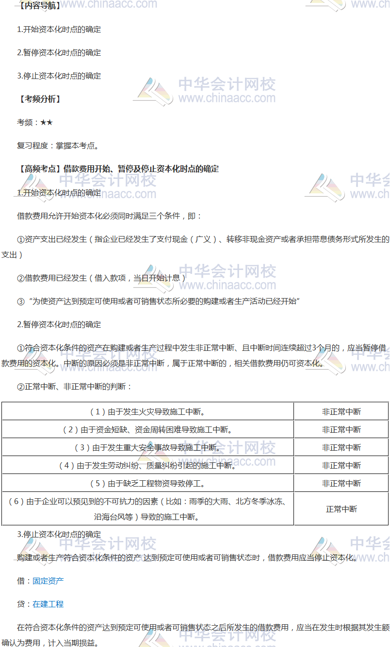 备考时间紧张,抓紧时间抓住重点备考注册会计师吧!正保会计网校教学老师为广大考生整理了高频考点,我们一起来学习2018《会计》高频考点:借款费用开始、暂停及停止资本化时点的确定。本考点属于《会计》第十一章借款费用第二节借款费用的确认的内容。