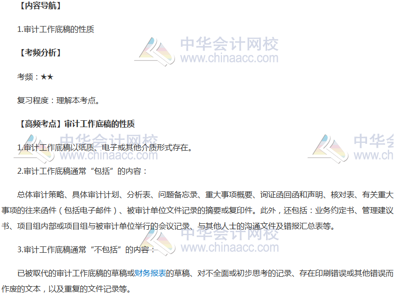 备考时间紧张,抓紧时间抓住重点备考注册会计师吧!正保会计网校教学老师为广大考生整理了高频考点,我们一起来学习2018《审计》高频考点:审计工作底稿的性质。