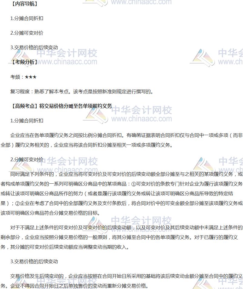 备考时间紧张,抓紧时间抓住重点备考注册会计师吧!正保会计网校教学老师为广大考生整理了高频考点,我们一起来学习2018《会计》高频考点:将交易价格分摊至各单项履约义务。本考点属于《会计》第十六章收入、费用和利润第一节收入的内容。
