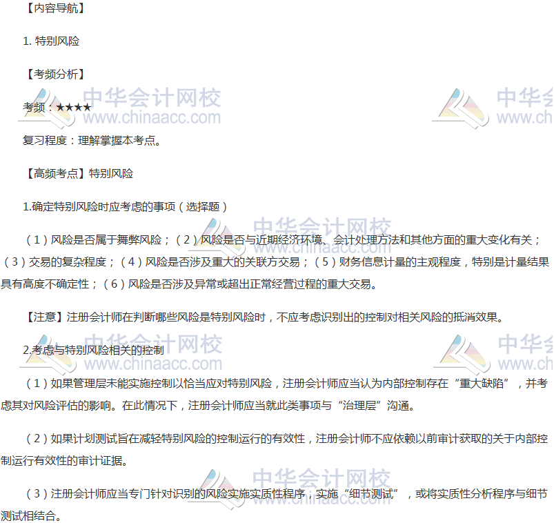 备考时间紧张,抓紧时间抓住重点备考注册会计师吧!正保会计网校教学老师为广大考生整理了高频考点,我们一起来学习2018《审计》高频考点:特别风险。