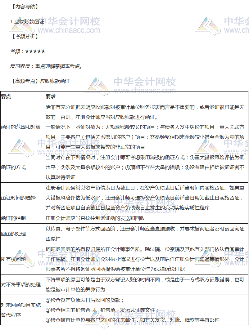 备考时间紧张,抓紧时间抓住重点备考注册会计师吧!正保会计网校教学老师为广大考生整理了注册会计师高频考点,我们一起来学习2018注册会计师《审计》高频考点:应收账款函证。