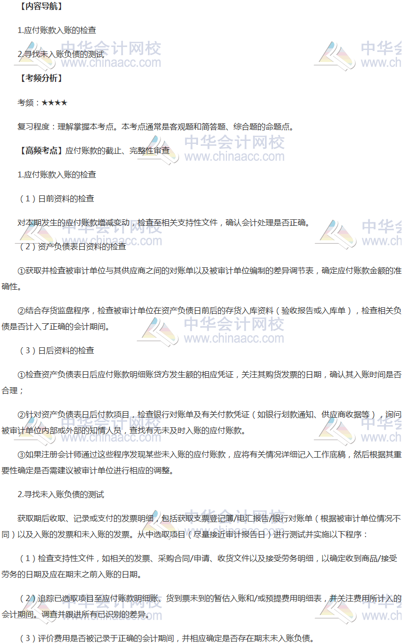 注会备考时间紧张,抓紧时间、抓住重点准备注册会计师考试吧!正保会计网校教学老师为广大考生整理了注册会计师高频考点,我们一起来学习2018《审计》高频考点:应付账款的截止、完整性审查。