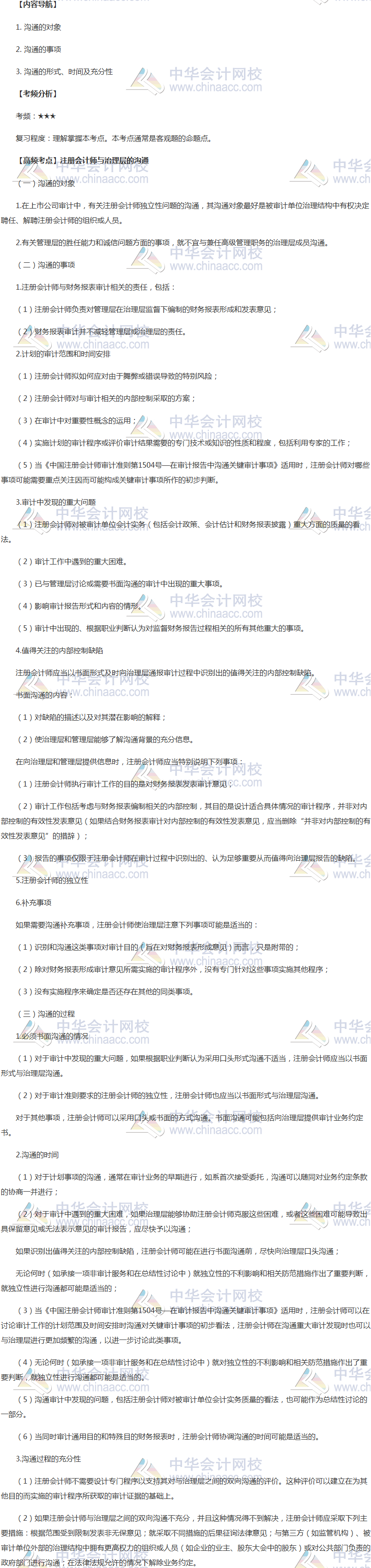 注会备考时间紧张,抓紧时间、抓住重点准备注册会计师考试吧!正保会计网校教学老师为广大考生整理了注册会计师高频考点,我们一起来学习2018《审计》高频考点:注册会计师与治理层的沟通。