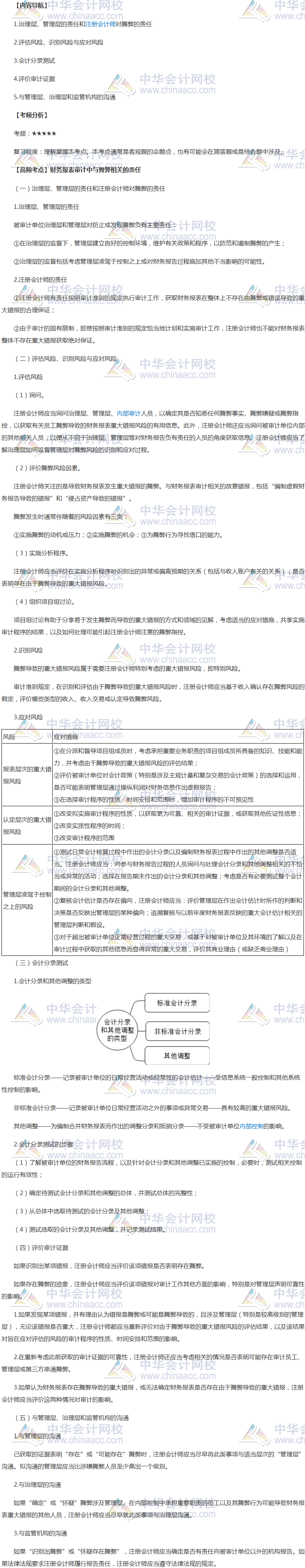 注会备考时间紧张,抓紧时间、抓住重点准备注册会计师考试吧!正保会计网校教学老师为广大考生整理了注册会计师高频考点,我们一起来学习2018《审计》高频考点:财务报表审计中与舞弊相关的责任。