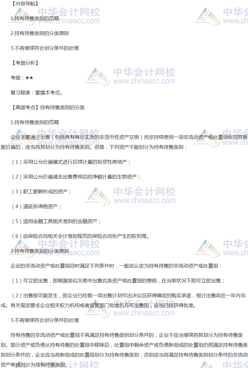 备考时间紧张,抓紧时间抓住重点备考注册会计师吧!正保会计网校教学老师为广大考生整理了高频考点,我们一起来学习2018《会计》高频考点:持有待售类别的分类。本考点属于《会计》第二十五章持有待售的非流动资产、处置组和终止经营第一节持有待售的非流动资产和处置组的内容。