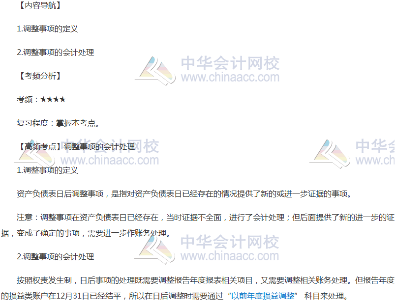 备考时间紧张,抓紧时间抓住重点备考注册会计师吧!正保会计网校教学老师为广大考生整理了高频考点,我们一起来学习2018《会计》高频考点:调整事项的会计处理。本考点属于《会计》第二十四章资产负债表日后事项第二节调整事项的会计处理的内容。