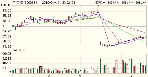 (下面是某股票除权后的K线图)