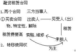 注意:①租赁物由承租人选择,出租人购买。②没有租赁期限的限制。③租赁物标的额一般比较大,例如飞机。