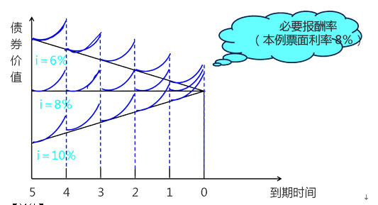 【基本规律】当折现率一直保持至到期日不变时,随着到期日的接近,债券价值向面值回归。