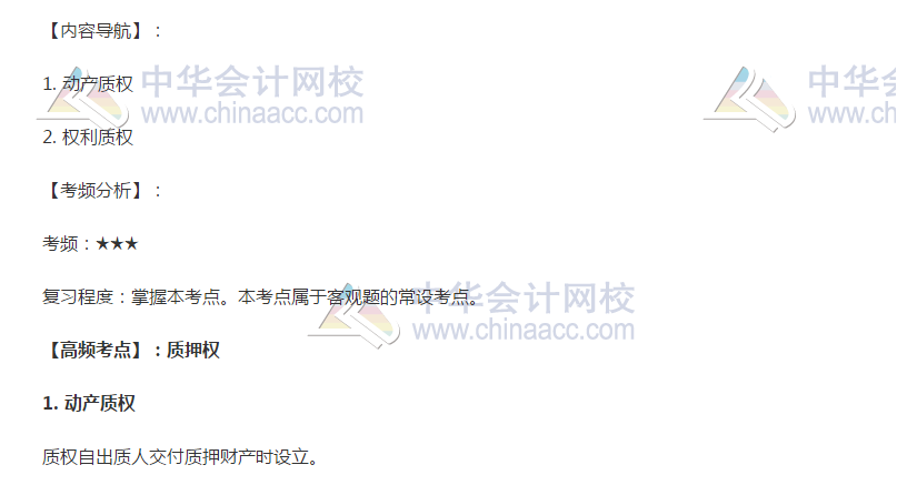 2019年注册会计师备战全面展开,为了能让注会的各位小伙伴在今年的注会备考中步步为营,正保会计网校的各位老师为大家整理了《经济法》各章高频考点。我们一起来学习2019《经济法》高频考点:质押权。本考点属于《经济法》第三章物权法律制度第五节担保物权的内容。