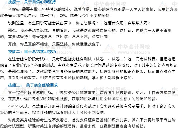 既然大家都能通过专业阶段6个科目的考试,那么在学习技巧和毅力方面自然是非常优秀的。只要我们坚持认真复习,掌握正确的备考方法,通过综合阶段不会太难。