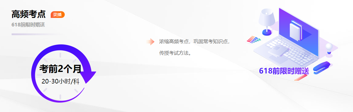 6月18日前购买,更是赠送高频考点课程,浓缩高频考点,巩固常考知识点,传授考试方法。