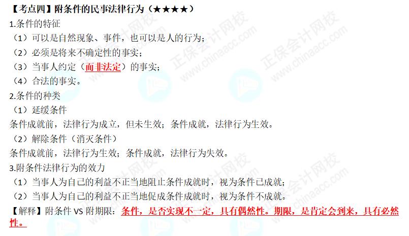 2022年注会《经济法》第二章高频考点4:附条件的民事法律行为