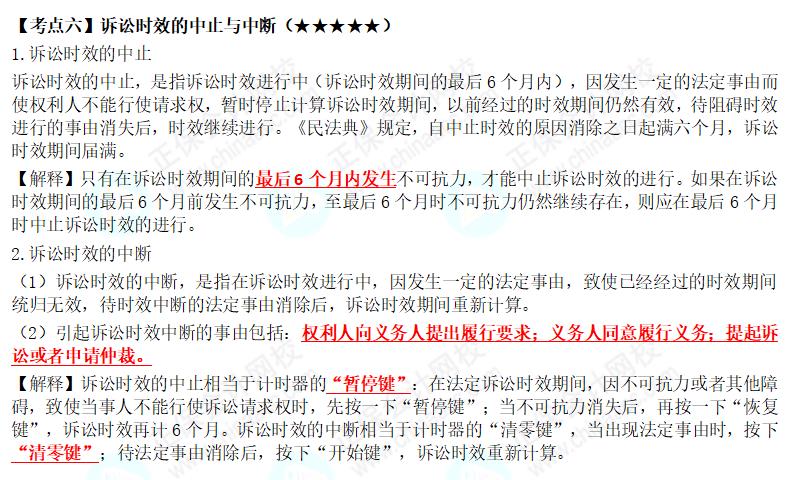 2022年注会《经济法》第二章高频考点6:诉讼时效的中止与中断