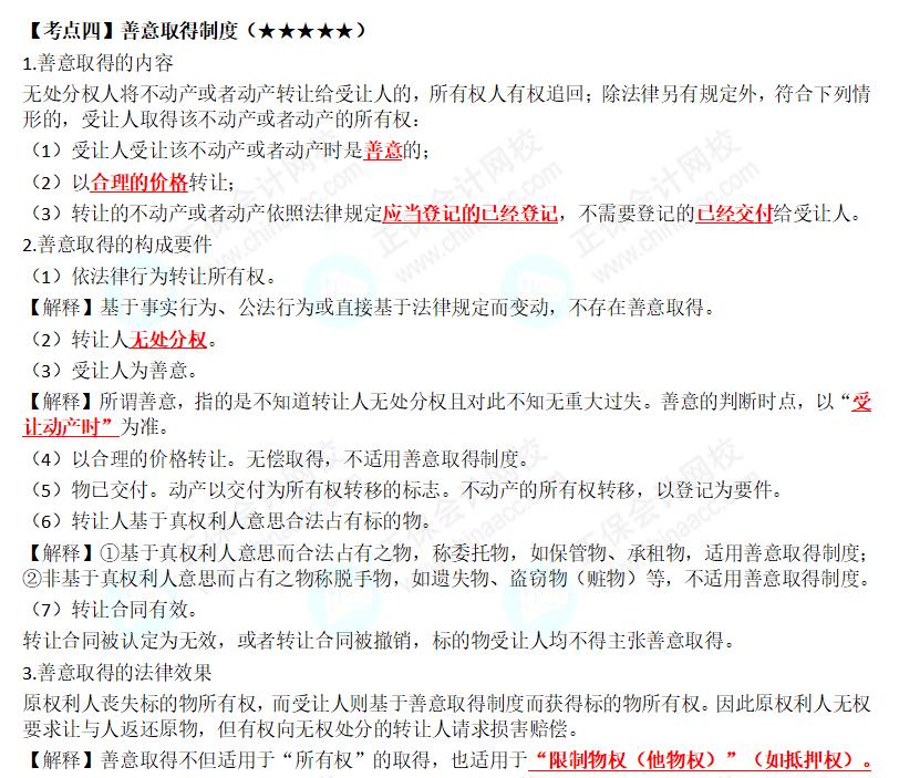 高频考点 | 物的种类、物权变动的原因与公示方式、共有制度、善意取得制度、建设使用地权、抵押权质押权、留置权 |