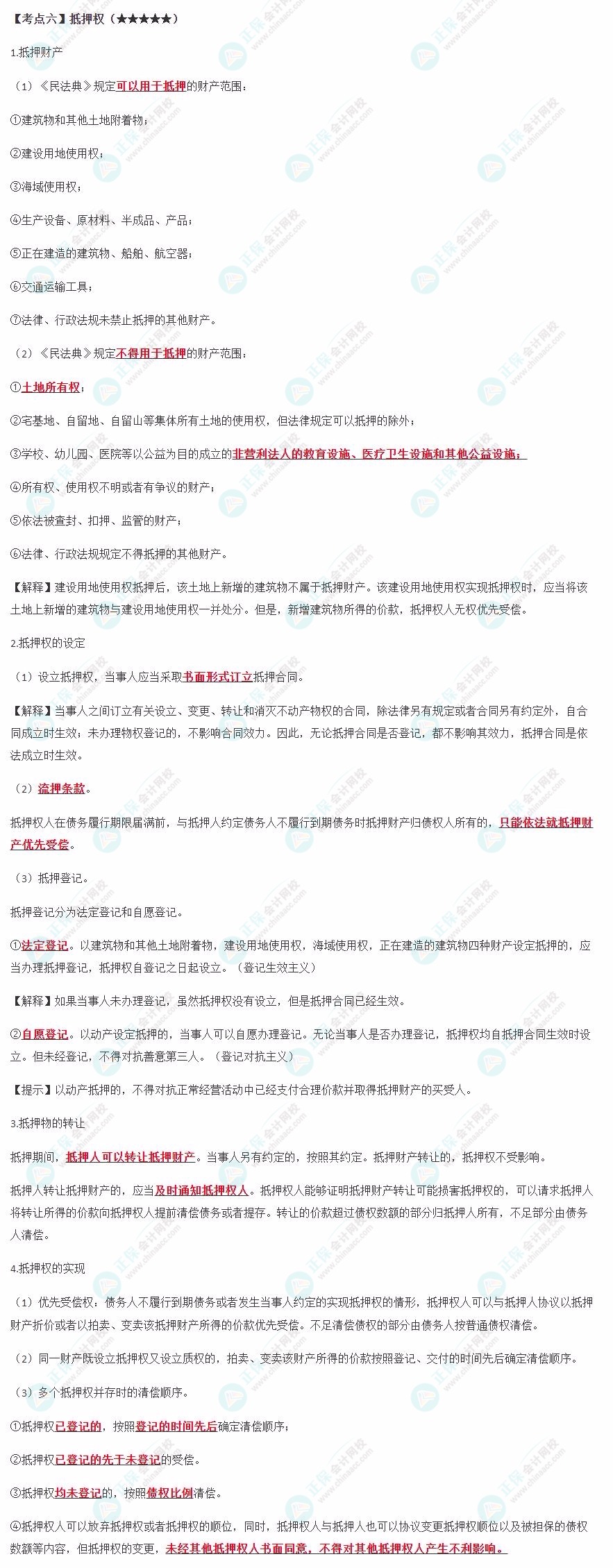 高频考点 | 物的种类、物权变动的原因与公示方式、共有制度、善意取得制度、建设使用地权、抵押权质押权、留置权 |
