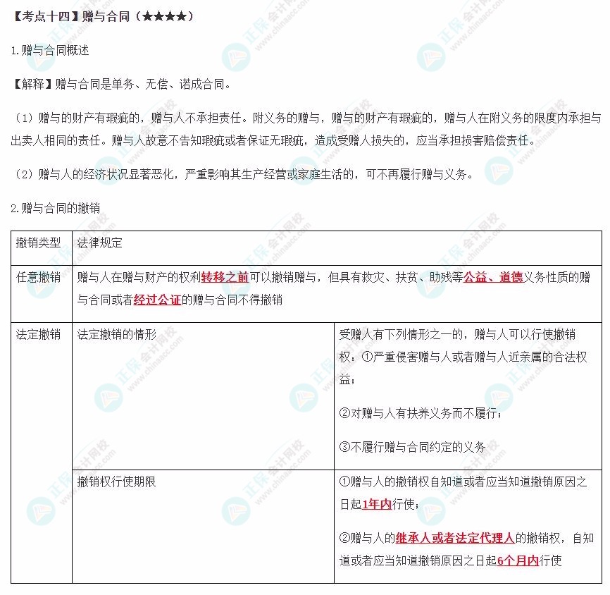 2022年注会《经济法》第四章高频考点14: 赠与合同