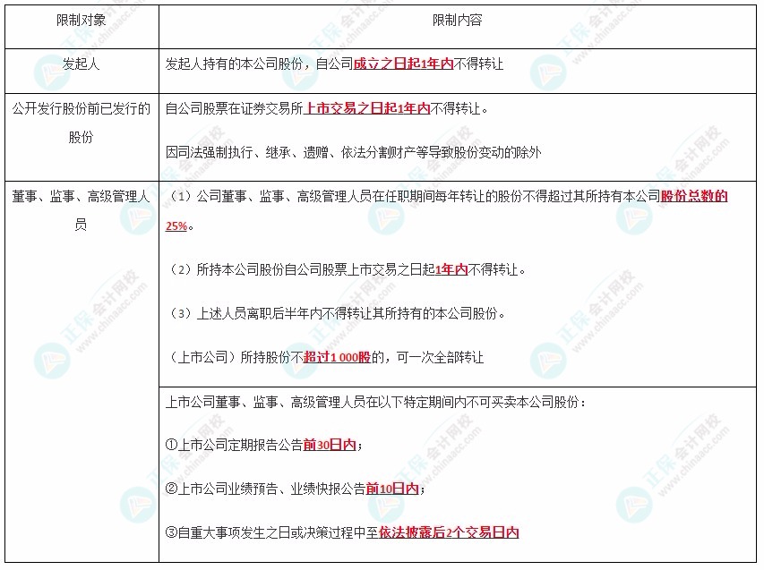 【考点十】股份有限公司股份转让的限制(★★★★★)