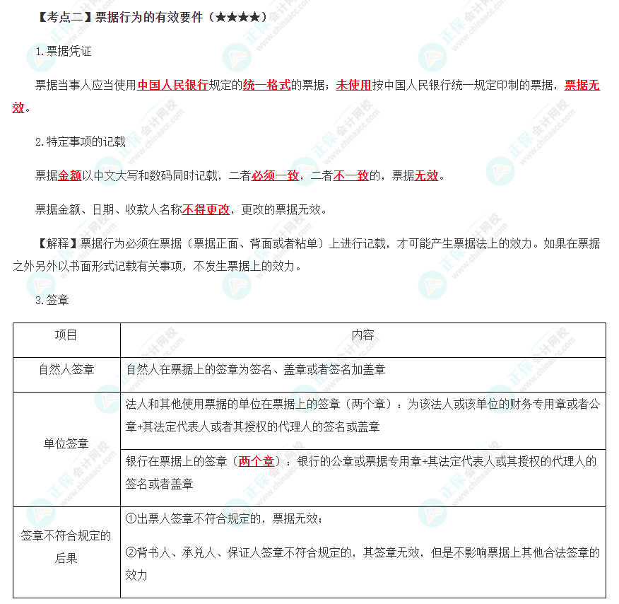 2022年注会《经济法》第九章高频考点2:票据行为的有效要件