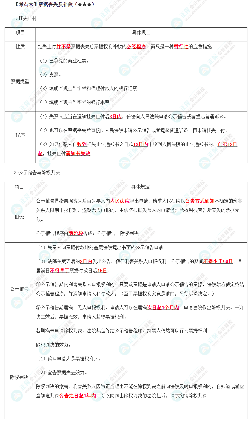 2022年注会《经济法》第九章高频考点6:票据丧失及补救