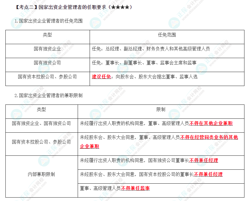 2022年注会《经济法》第十章高频考点2:国家出资企业管理者的任职要求